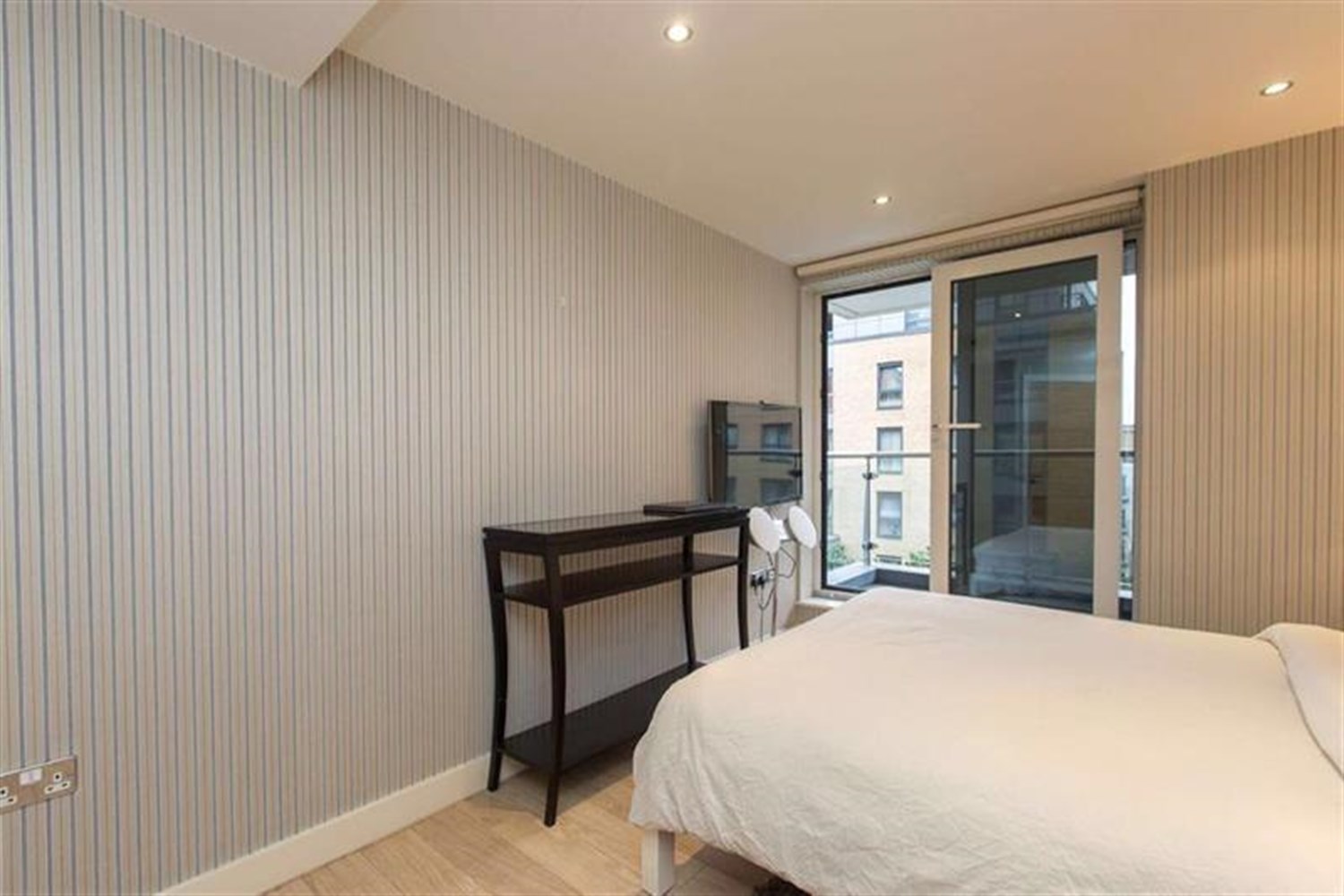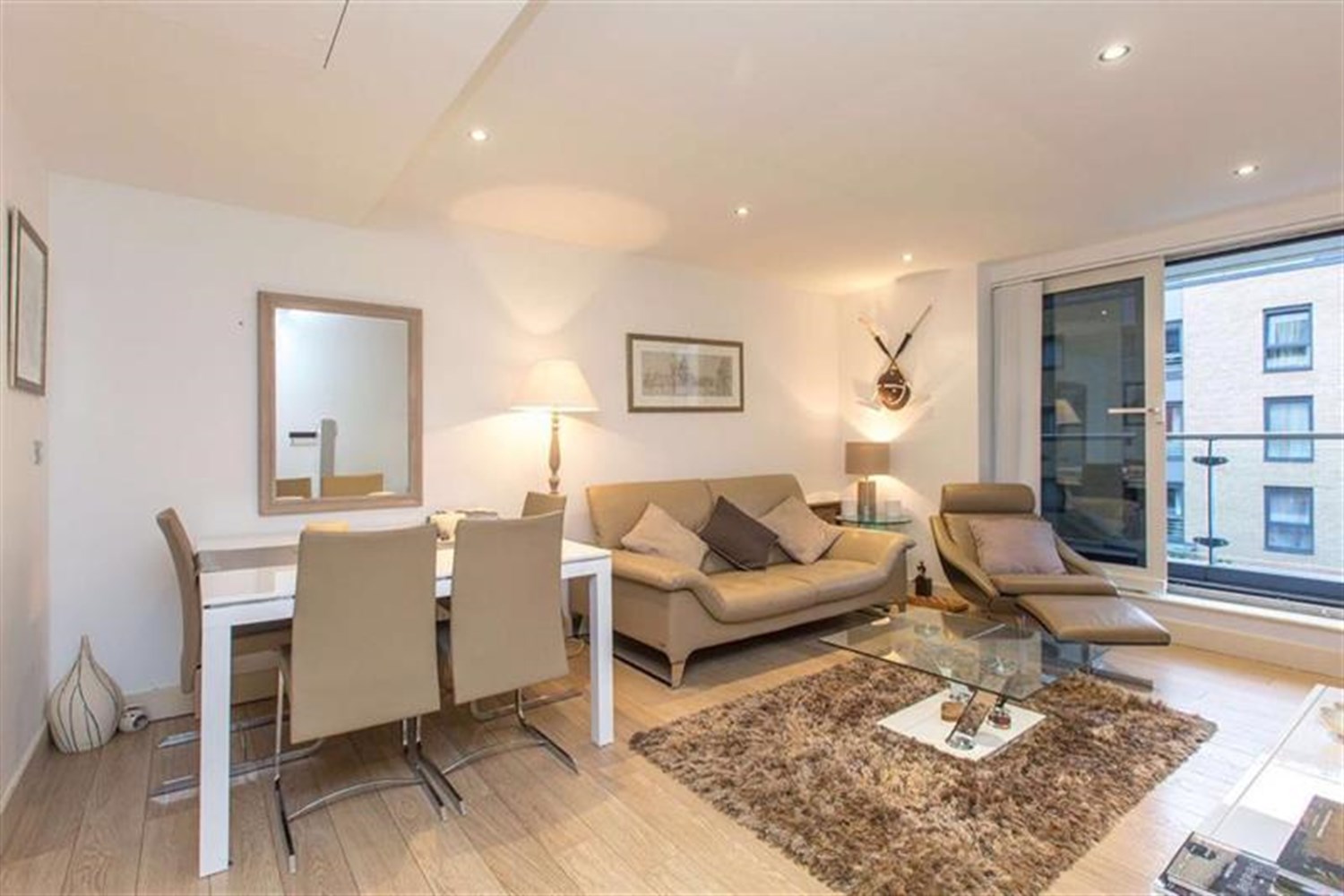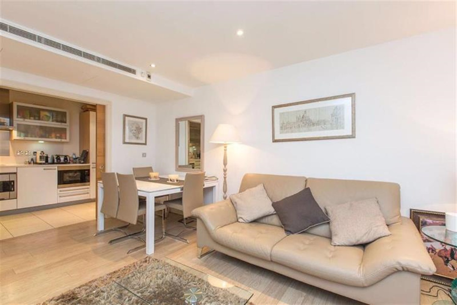 The property offers approximately 720 sq ft of internal living space, comprising a bright and spacious open-plan reception room with modern fitted kitchen, providing direct access to a private balcony.